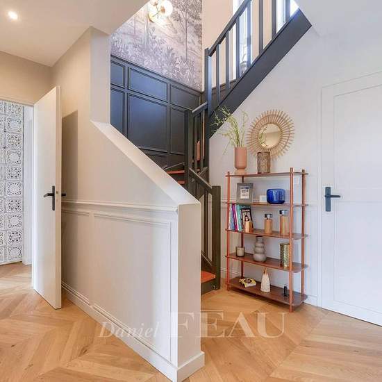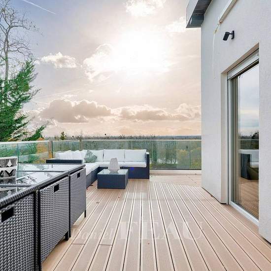 Sublime maison contemporaine BBC, édifiée en 2015, implantée sur un terrain remarquable de 2 700 m², dont 1 500 m² de jardin paysager entourant élégamment la propriété, le reste du terrain descendant en pente douce jusqu’à la Seine, offrant un cadre naturel rare et préservé. Dès l’entrée, la maison séduit par ses volumes généreux et sa luminosité omniprésente. Au rez-de-chaussée, une entrée avec vestiaire et toilettes invités mène à une pièce de vie absolument magistrale de 80 m², baignée de lumière grâce à ses vastes baies vitrées ouvrant s...