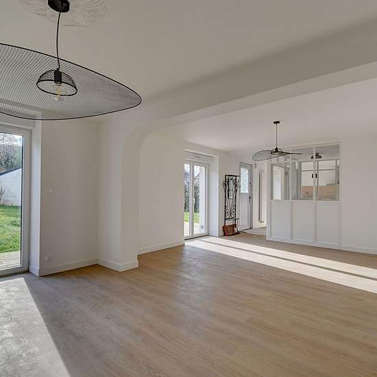' NOUVEAUTÉ KEREBEL IMMOBILIER - PLOUGASTEL-DAOULAS ' Découvrez cette superbe maison rénovée en 2022, alliant charme et modernité. Avec ses 149 m² habitables répartis sur 3 niveaux, cette propriété offre un cadre de vie exceptionnel. Au rez-de-chaussée, vous trouverez un séjour spacieux de 35 m² baigné de lumière, ouvrant sur une terrasse et un jardin clos de 300 m², une cuisine aménagée et entièrement équipée, un WC avec lave-mains et une buanderie. Le premier étage dispose d'un palier avec un grand dégagement desservant trois chambres, don...