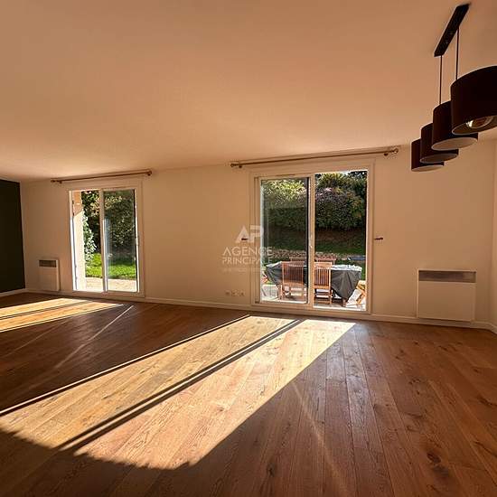 A propos de ce bien L'Agence PRINCIPALE vous propose à la location une maison familiale spacieuse de 7 pièces sur 3 niveaux, implantée sur un terrain de 530 m² avec jardin exposé plein sud. Au rez-de-chaussée, vous trouverez une entrée avec rangements, une cuisine indépendante entièrement équipée, un vaste séjour lumineux ouvrant sur le jardin, une buanderie, un débarras, un WC séparé ainsi qu'une pièce de stockage. Au premier étage se trouvent quatre chambres dont une suite parentale avec salle d'eau privative, ainsi qu'une salle de bains ...