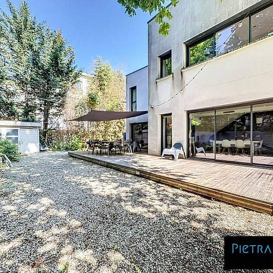 Location maison meublée avec piscine hors-sol 8 boulevard des Provinces 69110 Sainte-Foy-lès-Lyon À la limite de Sainte-Foy-lès-Lyon et Lyon 5ème, au coeur du quartier Saint-Luc, je vous propose cette maison contemporaine de 2011, rafraichie en 2025, de 140m² + bureau de 29m2 sur un terrain de 961 m². Au RDC, un séjour / salle à manger de 45 m², cuisine équipée séparée de 14 m², buanderie, WC et une grande pièce supplémentaire idéale pour bureau, salle TV ou 5ème chambre. À l'étage : 4 chambres dont une suite parentale (salle d'eau + dressin...