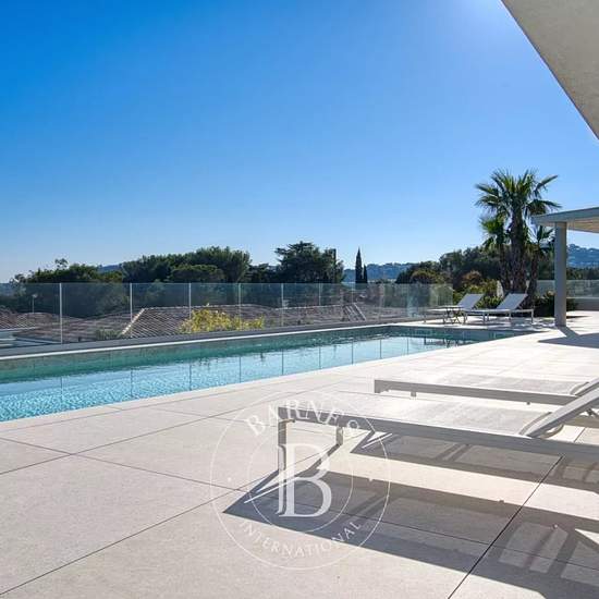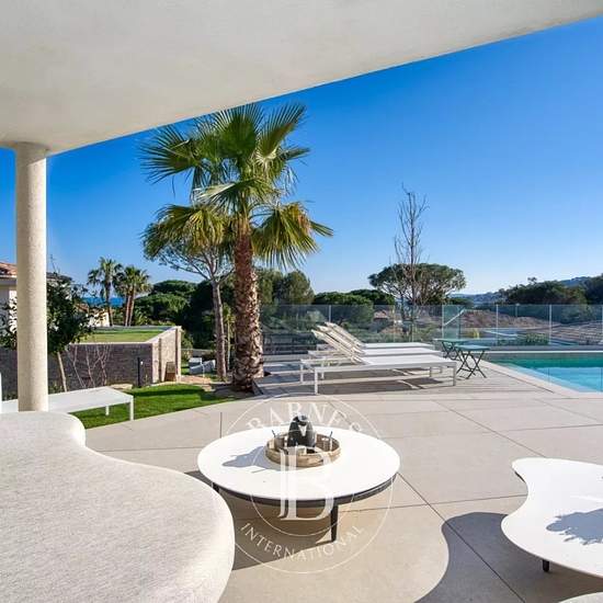 * Villa Bianca * Située dans un environnement calme, à proximité de la plage, cette villa neuve de 298 m² bénéficie d'une vue mer. La propriété se compose d'une cuisine équipée avec un cellier, d'un séjour spacieux et lumineux donnant sur de belles terrasses, de cinq chambres en suite avec chacune sa salle d'eau dont un dortoir d'enfants. En extérieur, un jardin joliment arboré avec d'agréables terrasses aménagées, des salons de jardin ainsi qu'une piscine chauffée (sur demande et en supplément). Équipements : Système d'alarme et de vidéo-su...