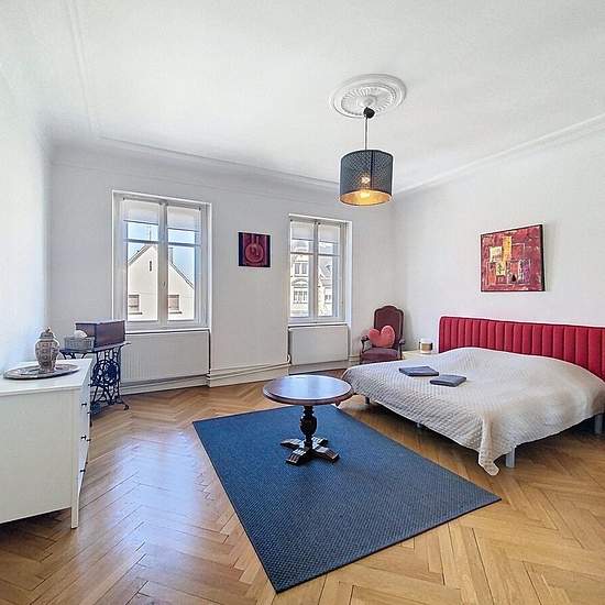 STRASBOURG - Maison de maître de style néo-classique de 1930 - rue des capucins - Sur un terrain de 6.37 ares, une maison entièrement meublée de 299.05m² (x4 plateau de 126m²) comprenant : Au rez-de-chaussée : une grande entrée avec un dégagement desservant : un séjour, une salle à manger, une cuisine indépendante aménagée et équipée donnant accès à une terrasse, une chambre, et une salle d'eau avec wc. Au 1er étage : 4 grandes chambres dont 1 avec un accès à un balcon, une salle de bains et un wc séparé. Au 2ème étage : entièrement rénové, ...