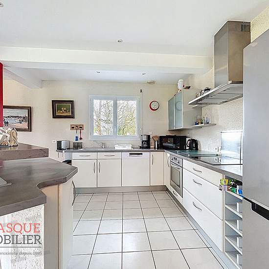 Découvrez cette magnifique maison à louer située à Tréflez, offrant un cadre de vie paisible et agréable, à proximité immédiate de la mer. Avec une superficie de 142.29 m², cette maison dispose de 7 pièces, dont 5 chambres spacieuses, idéales pour une famille. Le terrain de 5300 m² vous permet de profiter d'un grand espace extérieur, sans vis-à-vis. La maison, construite en 2002, se compose, au rez de chaussée, d'une entrée avec placard, une cuisine aménagée et équipée, un foyer ouvert dans le salon exposé plein sud, une chambre avec salle d...