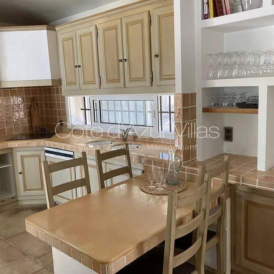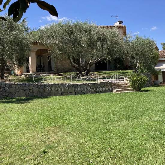 DISPONIBLE A PARTIR DE SEPTEMBRE 2026 - pour une durée de 12 mois Propriété de caractère de 4 chambres 244m2 (dont appartement indépendant entièrement rénové) située à 3 mn du village de Valbonne, climatisée avec piscine, internet fibre. Rez-de-chaussée : cheminée suspendue séparant l'espace de détente et le salon principale ouvert donnant sur la cuisine avec cuisinière à induction et réfrigérateur américain, buanderie à côté de la cuisine coin repas. 2 chambres avec rangement et espace bureau partageant une salle de bain rénovée plus WC inv...