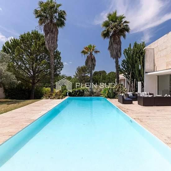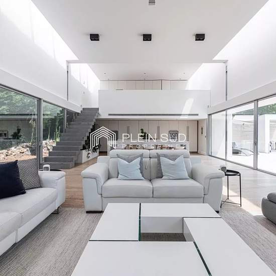 À quelques minutes des écoles de Valbonne et des commodités, cette villa d'architecte de plus de 600 m² habitables offre des prestations haut de gamme. Le vaste séjour lumineux, avec une magnifique hauteur sous plafond, s'ouvre directement sur la terrasse, la piscine et le pool house. La cuisine ouverte prolonge harmonieusement l'espace de vie. Côté nuit, la villa propose une suite parentale avec double salle d'eau, ainsi que 4 chambres supplémentaires. Une dépendance de 50 m² complète l'ensemble, idéale pour recevoir. Les espaces de loisirs...