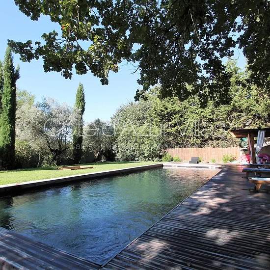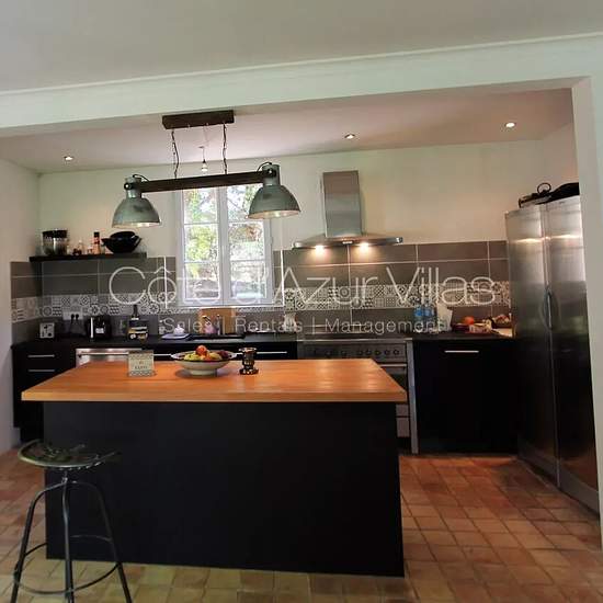 Pas de Disponibilité Spacieuse villa d’environ 210 m² proche de Valbonne. Rez-de-chaussée : Séjour, salle à manger et cuisine entièrement équipée ouvert sur 70m², le tout ouvrant sur le jardin plat de 1800 m². Buanderie, coin bureau, suite parentale ensuite avec salle de bain ouverte (baignoire et douche), WC séparé et dressing ouvert. Premier étage : Seconde suite parentale ensuite avec salle de bain ouverte (baignoire et douche), WC séparé et dressing, deux chambres partageant une salle de bain, une chambre avec douche ouvert et lavabo. Ex...