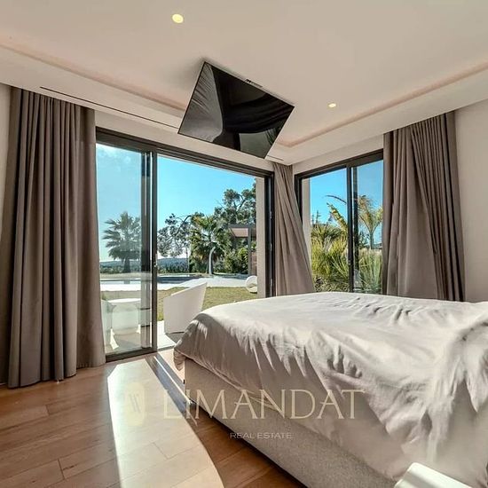 Location long terme Au cœur d’un environnement résidentiel exclusif, cette propriété contemporaine incarne l’élégance moderne et le raffinement absolu. Érigée sur un terrain paysager de 2430 m², elle offre une expérience de vie unique, mêlant architecture épurée et volumes généreux. Conçue pour ceux qui recherchent confort, intimité et harmonie avec l’extérieur, la villa déploie 275 m² d’espaces de vie baignés de lumière, grâce à de vastes baies vitrées et une orientation idéale. Les espaces extérieurs, sublimés par des terrasses, une piscin...