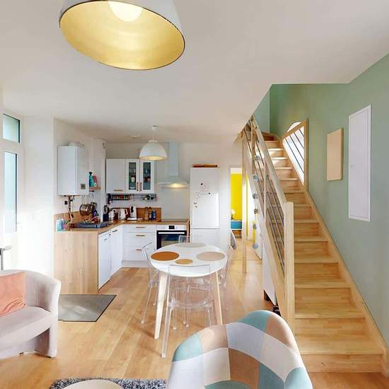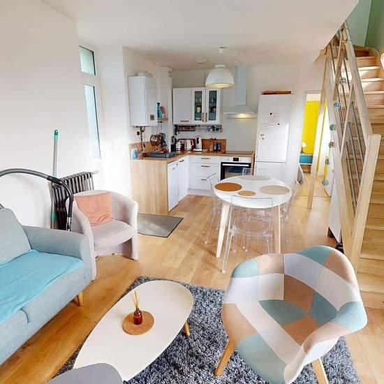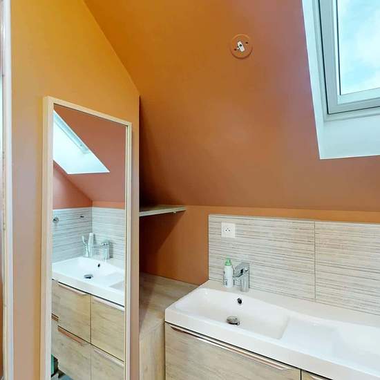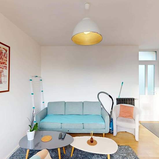 MAISON 5 PIÈCES AVEC JARDIN OQORO vous propose en location au 4 Rue Cosmao Prétot dans la commune de Brest (29200), cette colocation de 3 chambres de 70 m². LA CHAMBRE Cette chambre se compose d'un lit double, une table de chevet avec une lampe, un bureau avec une lampe et une chaise ainsi qu'un placard dressing. Cette chambre dispose de sa propre salle d'eau privative avec une cabine de douche, un meuble vasque avec un miroir ainsi qu'un porte-serviettes radiateur. LES ESPACES COMMUNS Cette colocation de trois chambres s'ouvre sur une pièce...