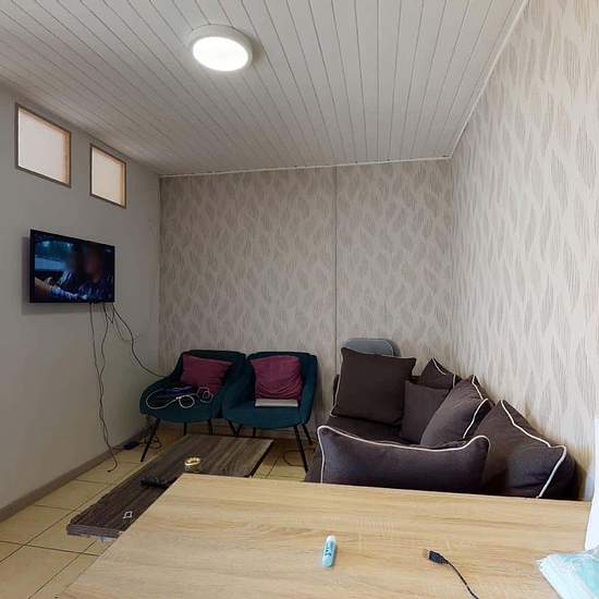 Découvrez cette colocation de 3 chambres de 50 m² située au 1 allée Athéna (Villeurbanne, 69100). LA CHAMBRE La chambre 1, adjacente à la salle de bain et au fond du couloir, se compose d’un lit double ainsi que d’un intégré. LES ESPACES COMMUNS L’appartement se compose d’un salon avec un canapé, deux fauteuils, une table basse et une télévision et d’une cuisine, semi-ouverte sur le salon, équipée : une gazinière, une hotte, un frigo, un micro-onde et de nombreux rangements. Une grande salle de bain avec douche, baignoire, double vasques, ...