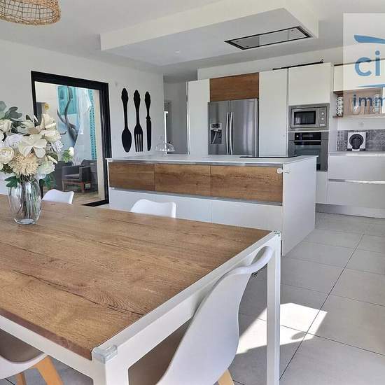VILLA CONTEMPORAINE MEUBLEE GOLF DE BAILLARGUES - Située à 5 minutes en voiture de l'autoroute A9, de la gare, à 15 minutes de l'aéroport et de MONTPELLIER (34) dans un cadre privilégié et sécurisé, au calme en fond d'impasse aux abords du Golf international de Massane. VILLA 8 PIECES meublée moderne et lumineuse, construction 2017, de 301,36 m² sur une parcelle de terrain de 1038 m² avec PISCINE. Cette VILLA comprend au rez-de-chaussée : un bel espace de vie de 112.90 m² composé d'un salon-séjour, d'une cuisine ouverte entièrement équipée; ...