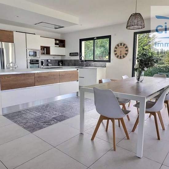 VILLA CONTEMPORAINE MEUBLEE GOLF DE BAILLARGUES - Située à 5 minutes en voiture de l'autoroute A9, de la gare, à 15 minutes de l'aéroport et de MONTPELLIER (34) dans un cadre privilégié et sécurisé, au calme en fond d'impasse aux abords du Golf international de Massane. VILLA 8 PIECES meublée moderne et lumineuse, construction 2017, de 301,36 m² sur une parcelle de terrain de 1038 m² avec PISCINE. Cette VILLA comprend au rez-de-chaussée : un bel espace de vie de 112.90 m² composé d'un salon-séjour, d'une cuisine ouverte entièrement équipée; ...