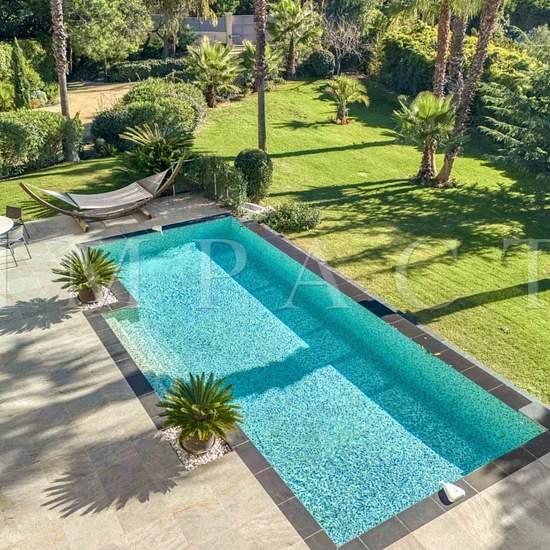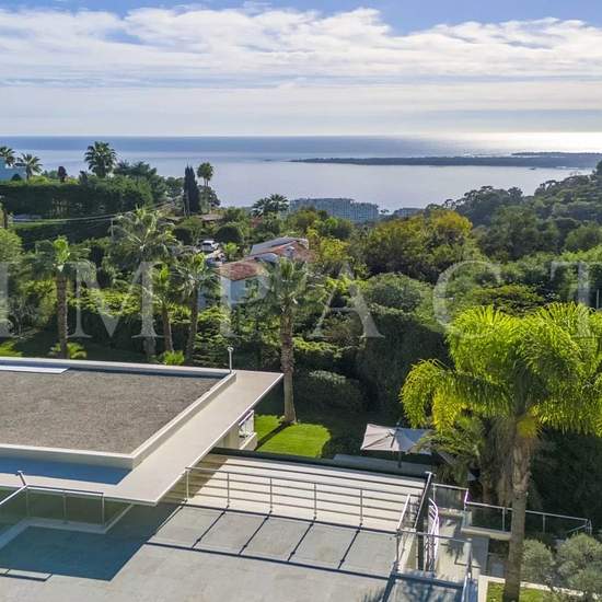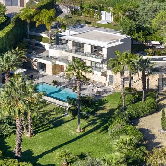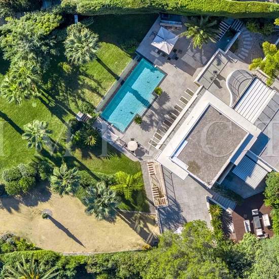 Location longue durée - Luxueuse villa contemporaine vue mer Villa moderne de 5 chambres de 220 m² avec piscine chauffée et un beau jardin de 2100m². Descriptif REZ DE CHAUSSE Entrée dans la propriété par une belle entrée vue mer arboré. Hall d'entrée spacieux s'ouvrant sur un salon/salle à manger moderne, vue mer et piscine. Coin salon avec TV et 2 canapés donnant sur une terrasse couverte vue mer et piscine avec une table a manger pour 10 personnes. Salle à manger avec un ilot central pour 7 personnes et cuisine ouverte totalement équipée ...