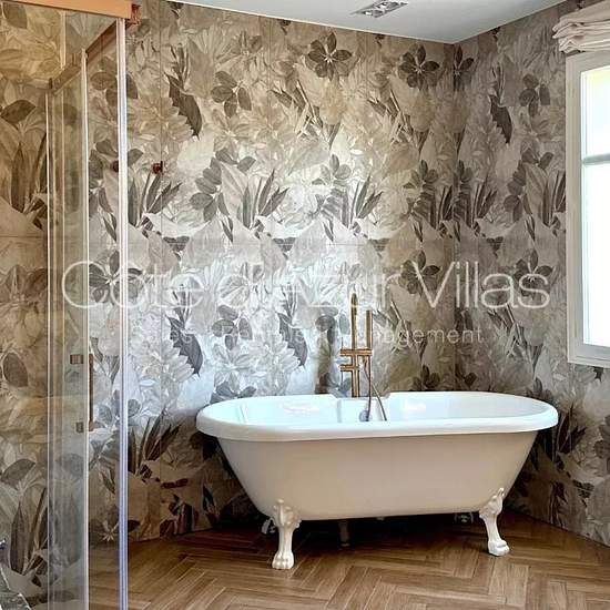 INDISPONIBLE La villa Rosoliel est située dans le quartier Montrose à 7 minutes de la Croisette. Elle est idéale si vous êtes en quête de confort, de sécurité et d'une situation géographique privilégiée. Très bien équipée, elle vous offrira un cadre de vie paisible et haut de gamme. Cette propriété exceptionnelle, dont les intérieurs sont rénovés à neuf, est entièrement équipée de la climatisation. Face à la terrasse de la piscine: Studio accessible par une entrée indépendante, salle de fitness privée, hammam et sauna pour des moments de bie...