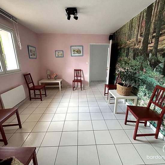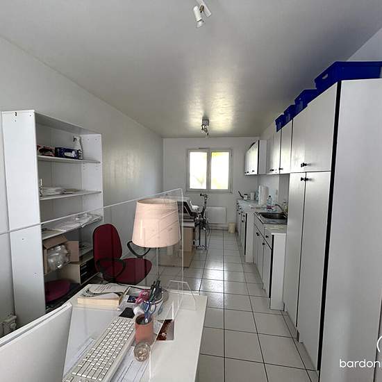 Secteur médiathèque, ce local professionnel de 98 m² sera disponible à partir du 2 janvier 2026. Il dispose de trois places de stationnement situées à l'arrière du bâtiment. A l'intérieur, un premier espace d'accueil, une seconde pièce pouvant également servir d'accueil, une salle d'attente, deux bureaux, une salle de consultation, une kitchenette, une réserve, ainsi que deux WC dont un adapté PMR. Cécile PRAUD (EI) Agent Commercial - Numéro RSAC : - .