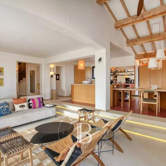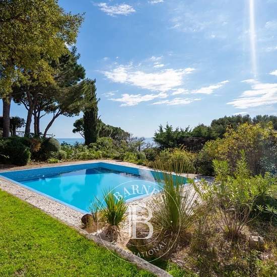 Cette villa située sur un terrain d'environ 2000 m² dispose d'une superficie d'environ 193 m² habitables est répartie sur trois niveaux, le tout offrant une vue sur la mer. Elle comprend 6 chambres, 5 salles de bains, et peut accueillir jusqu'à 12 personnes. Au rez-de-chaussée, on trouve un salon, une cuisine équipée, ainsi que trois chambres, chacune avec sa propre salle de bain. À l'étage, une suite parentale dispose de sa salle de bain et d'une terrasse avec vue sur la mer. En rez-de-jardin, un studio indépendant comprend un salon avec cu...