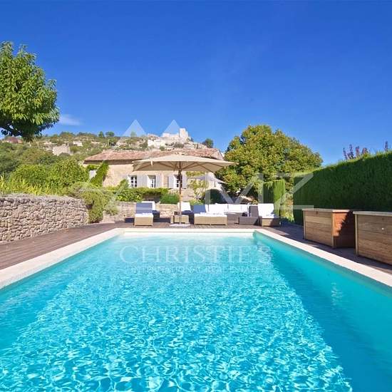 Cette superbe ferme en pierre du XVIIIe, parfaitement rénovée et décorée avec goût, offre une vue panoramique sur les villages perchés, la vallée du Luberon et le Mont Ventoux. Sur environ 2,3 hectares de terrain avec oliveraies, lavandes, arbres fruitiers, vignes... elle est située à quelques minutes seulement en voiture des villages de Bonnieux et Lacoste. Le jardin paysagé intègre une belle piscine avec terrasse en bois et un court de tennis. L'intérieur raffinée offre beaucoup de lumière et une atmosphère chaleureuse : l'entrée conduit à...
