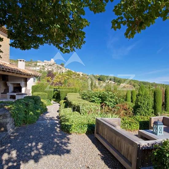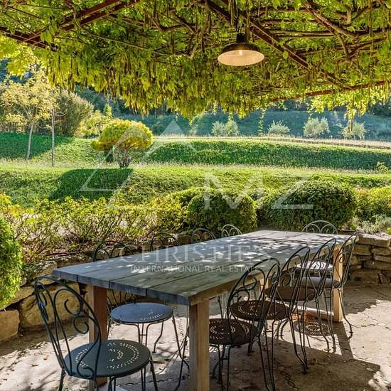 Cette superbe ferme en pierre du XVIIIe, parfaitement rénovée et décorée avec goût, offre une vue panoramique sur les villages perchés, la vallée du Luberon et le Mont Ventoux. Sur environ 2,3 hectares de terrain avec oliveraies, lavandes, arbres fruitiers, vignes... elle est située à quelques minutes seulement en voiture des villages de Bonnieux et Lacoste. Le jardin paysagé intègre une belle piscine avec terrasse en bois et un court de tennis. L'intérieur raffinée offre beaucoup de lumière et une atmosphère chaleureuse : l'entrée conduit à...