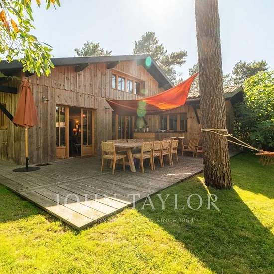 La Cabane des Pins – Escapade bohème chic à Piraillan Située au cœur du vibrant village de Piraillan, sur la prestigieuse presqu'île du Cap-Ferret, La Cabane des Pins est une villa landaise rénovée avec soin, offrant une atmosphère bohème chic idéale pour des séjours en famille ou entre amis. Implantée sur un terrain arboré de 1 200 m², cette maison spacieuse séduit par son charme authentique et ses prestations haut de gamme. À l'extérieur, profitez d'une piscine privée, d'une cuisine d'été, d'un terrain de pétanque et d'une dépendance aména...