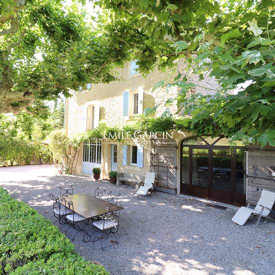 Posé dans un écrin de verdure, le Mas Lou est une élégante demeure en pierre du XIX? siècle qui conjugue charme provençal et confort. Son terrain de 2 hectares offre un cadre idyllique pour un séjour en toute tranquillité. À l'ombre de deux majestueux platanes centenaires, la cour principale invite à la détente et aux repas en plein air. La grande piscine au sel de 15 x 5 mètres, le salon d'été et le boulodrome viennent parfaire cette atmosphère paisible et conviviale. Situé en pleine campagne, tout en restant proche des villages authentique...