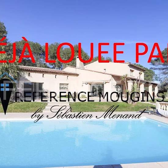 EXCLUSIVITE. Votre référent immobilier local de MOUGINS vous propose. AU CALME ABSOLU. Disponible à partir du 15 octobre 2024 pour 1 ou 2 an. RARE. Dans un des domaines les plus prestigieux et sécurisé de MOUGINS. Proche des écoles internationales. Villa de 300 m² habitables approx sur un superbe terrain plat de 5400 m² approx avec court de tennis et grande piscine chauffée. Grand séjour avec hauteur sous-plafond. 6 Chambres dont 3 en suite en rez-de-chaussée. 3 autres chambres à l'étage. Vues dégagées. Un véritable havre de paix. Charges en...