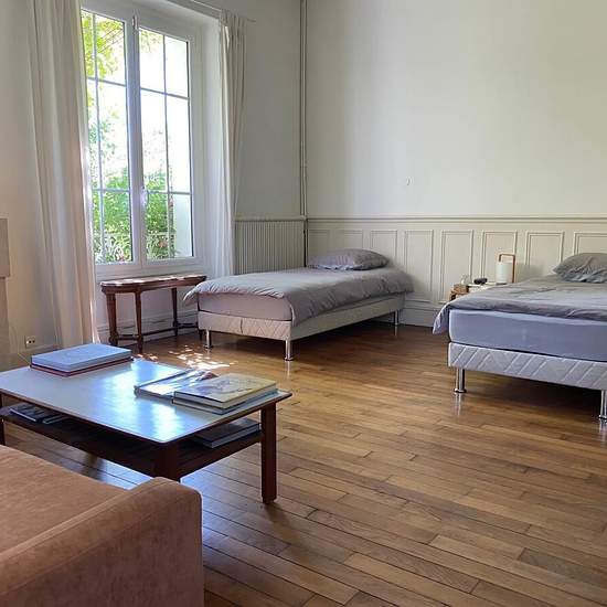 ORGEVAL - Proximité commerces - Bus et accès A13/A14 - Dans un cadre bucolique ancien corps de ferme rénové - LOCATION MEUBLEE - Maison individuelle de 205 m² sur 2 niveaux qui est composée : au rez-de-chaussée : entrée, cuisine aménagée et équipée, un vaste salon lumineux avec accès jardin, 1 chambre et une salle de douche avec wc. A l'étage: un premier espace composé de 3 chambres, une salle de bains avec wc et un dressing. Le deuxième espace avec une suite parentale, grand espace bureau, salle de bains/douche avec dressing et un wc séparé...