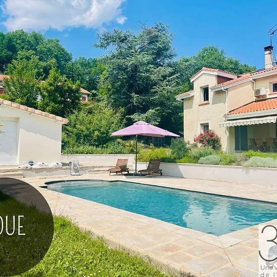 Maison T6 meublée avec dépendance T2 et piscine PIBRAC – Idéalement située – Maison familiale d’environ 156m² avec sous-sol, sur parcelle de 1236m² végétalisée, avec une dépendance T2 d’environ 42m² et une piscine. Libre à compter du 16/07. Cette maison est au calme et proche des commodités. Au rez de chaussée : une entrée avec placard de rangement, une cuisine ouverte équipée de 16m²(plaque induction, hotte, four, frigo, micro-ondes…), un salon/salle à manger d'environ 43m² avec cheminée centrale foyer fermé, un espace bureau et des toilett...