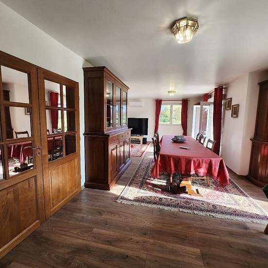 A propos de ce bien Saint Julien-en-genevois maison individuelle meublée sur 2 niveaux offrant au rez de chaussée un double séjour + salon avec un accés à une grande cuisine entièrement aménagée et équipée d'un four ,lave vaisselle ,grand frigo ,micro ondes et divers équipements électroménagers ,un étage avec 3 chambres + 3 salles de bains +1 WC . La maison dispose d'un appartement séparé au sous sol comprenant un séjour avec un double couchage ,une cuisine, équipée ,1 chambre avec une salle de bains ,un wc avec lave mains + buanderie . une...