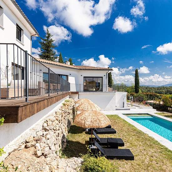 Saint-Paul-de-Vence - Découvrez cette villa contemporaine récente, nichée à quelques minutes du village de Saint-Paul de Vence. Profitez d’un cadre paisible tout en étant proche de toutes les commodités. La villa offre un espace de vie lumineux comprenant un grand salon avec cuisine ouverte, salle à manger, et un accès direct à une terrasse surplombant le jardin et la piscine. Les équipements haut de gamme incluent une piscine, un sauna, une salle de sport entièrement équipée, un terrain de pétanque, et une aire de jeux pour enfants. Le nive...
