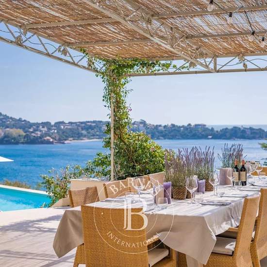 Saint Raphaël: Une oasis provençale de 371 m² composée d' une cuisine entièrement équipée, une salle à manger et un magnifique séjour, cinq chambres luxueuses en-suite, grandes terrasses aménagées pour les repas face à la mer. Un jardin de 5 200 m², avec accès direct au port pittoresque d'Agay et aux premières plages. Une piscine à débordement de 20 m x 4,5 m, un pool house entièrement équipé avec barbecue et un terrain de pétanque vous invitent à vous détendre et à vous divertir. Places de stationnement. Résidence privée et sécurisée. Ce bi...