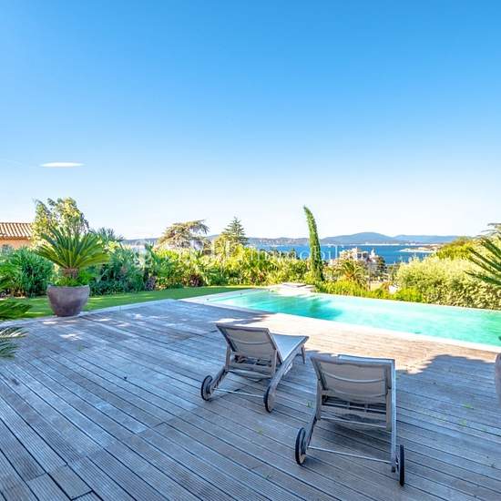 Villa Sainte-Maxime. Dans le secteur prisé du sémaphore, à proximité immédiate du centre-ville avec une magnifique vue sur le Golfe de Saint-Tropez, superbe villa d'env 250 m² édifiée sur une parcelle de 1946m². Elle propose : Entrée, wc invités, vaste séjour cheminée, salle à manger, cuisine us équipée, bureau, 3 chambres, salle de bains avec douche et salle d'eau avec wc. Garage. Un appartement F3 de 85 m² indépendant. Sous-sol total. Une piscine agrémente le jardin joliment arboré. Maison de gardien. Possibilité d'extention de plus de 200...