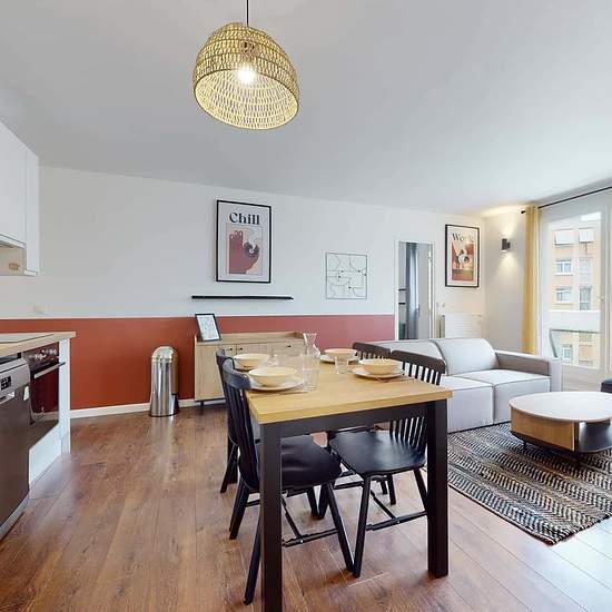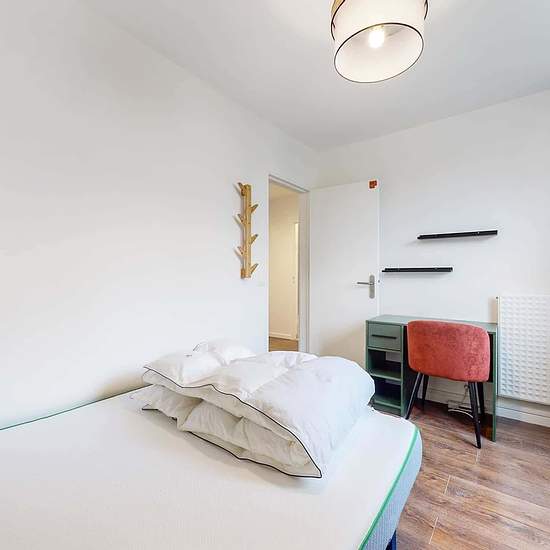 This spacious and comfortable room has been designed for you dear roomie! Practical and functional, the room is equipped with high quality bedding (140x200cm), a beautiful wardrobe, a night table and a true office space for your exams or your home office days! All of this in a cheerful and warm atmosphere. In addition, you have access to a shared bathroom and a shared balcony. Beautiful flatshare in Asnières-sur-Seine ! Discover Asnières Zola 5, our cosy and freshly renovated contemporary-style apartment. Close to local shops and restaurants...