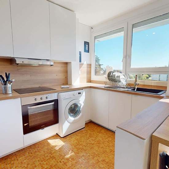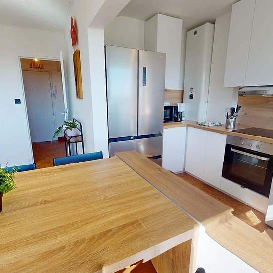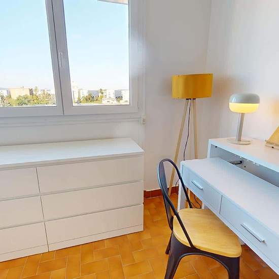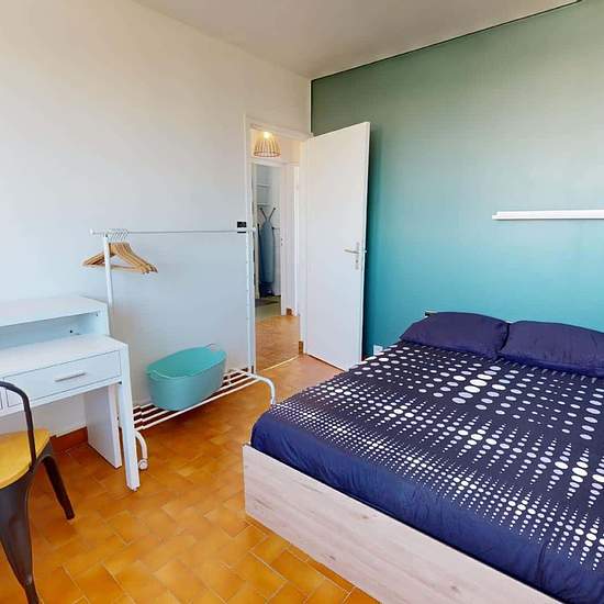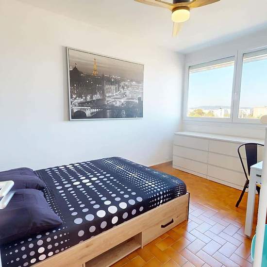 APPARTEMENT 4 PIÈCES AVEC BALCON ET JARDIN Oqoro vous présente cette colocation de 3 chambres de 68 m² localisée au 31 Rue Nungesser Et Coli à Bron (69500). LA CHAMBRE Cette chambre possède un lit double dont le sommier possède des rangements, un bureau, et une commode. LES ESPACES COMMUNS Cet appartement de 4 pièces offre trois chambres, une cuisine et une salle de bains avec douche et meuble vasque. L'appartement possède un chauffage collectif. Il possède aussi la fibre optique. Il se situe au 4e étage d'un immeuble. LES EXTÉRIEURS Un b...