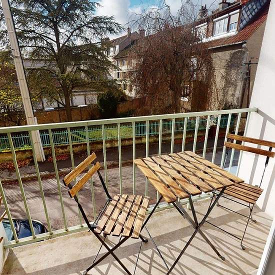 APPARTEMENT 4 PIÈCES AVEC BALCON Oqoro vous présente cette colocation de 3 chambres de 65 m² située au 18 rue Jehan De Marville (Dijon, 21000). LA CHAMBRE L’aménagement des 9m2 de la chambre 1 offre tout le confort nécessaire : lit double un bureau, une chaise et des rangements. LES ESPACES COMMUNS Cet appartement comporte un grand salon lumineux avec un canapé, une table à manger, une table basse, une TV, etc. Le plus : ce salon offre un accès à un balcon aménagé avec table et chaises. La cuisine moderne, quant à elle est séparée et entiè...