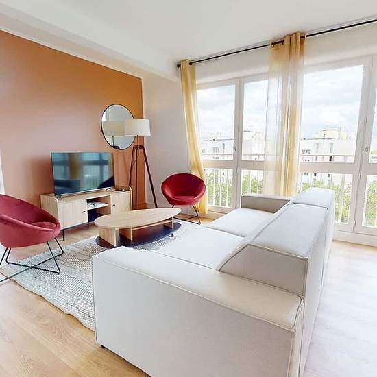 This spacious and comfortable room has been designed for you dear roomie! Practical and functional, the room is equipped with high quality bedding (140x200cm), a beautiful wardrobe, a night table and a true office space for your exams or your home office days! All of this in a cheerful and warm atmosphere. In addition, you have access to a shared bathroom and a shared balcony. Beautiful flatshare in Gennevilliers ! Discover Gennevilliers Maurice Ravel 2, our cosy and freshly renovated contemporary-style apartment. Close to local shops and re...