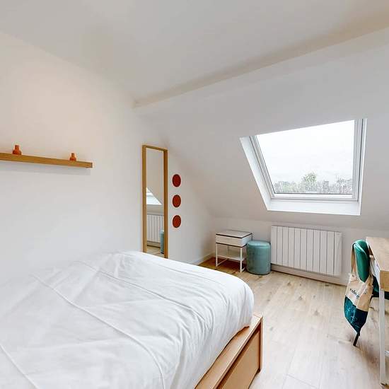 Discover this beautiful room fully equiped and designed for one person. You will also have the great pleasure of sharing your bathroom with one of your colivers. Get to know more about your neighbour while brushing your teeth ! Discover our beautiful coliving house in Saint Maurice Pellevoisin, 10 min by transport from Lille. BARBIER has it all: located 10 minutes by bike or streetcar from the Lille Europe/Lille Flandres train station, you'll have no trouble getting around! The house has 15 private spaces bathed in natural light thanks to ...