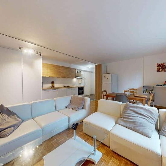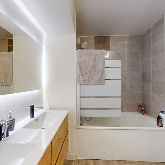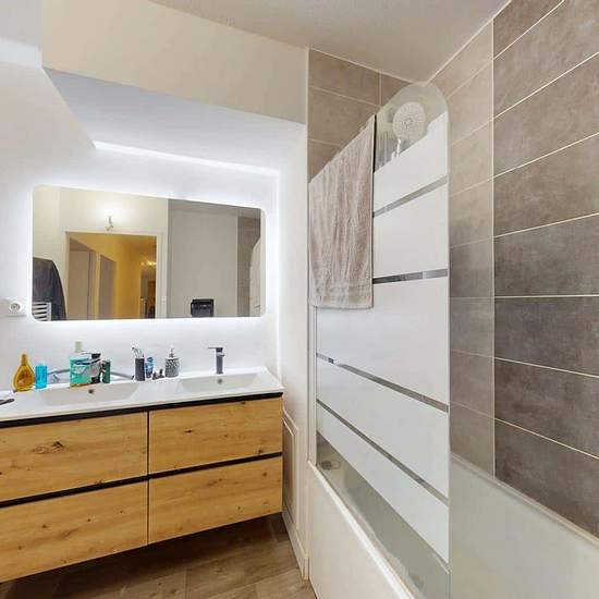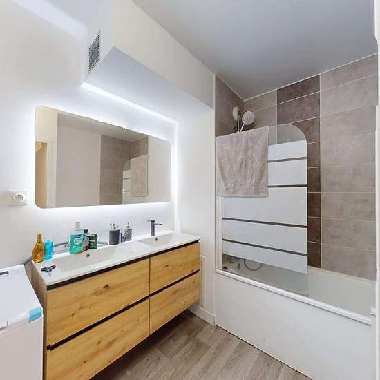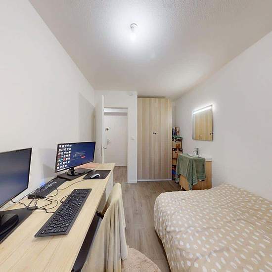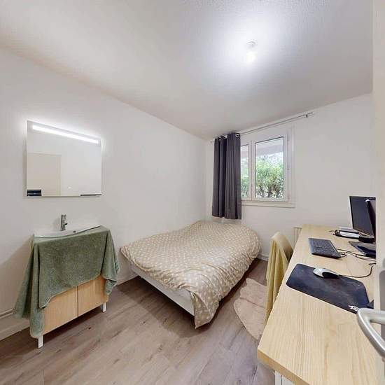 Oqoro vous présente cette colocation de 3 chambres de 72 m² au 60 Avenue Leclerc à Lyon (69007). LA CHAMBRE La chambre est équipée d'un lit double, d'un bureau et d'une chaise, ainsi qu'une penderie. Le plus de cette chambre est son meuble vasque avec miroir. LES ESPACES COMMUNS La pièce de vie est meublée avec deux canapés, une table basse, un meuble TV ainsi qu'une télévision et une table à manger avec des chaises. Cette pièce donne accès à une terrasse qui vous fera gagner en confort et en espace. La cuisine ouverte est équipée d'un fou...