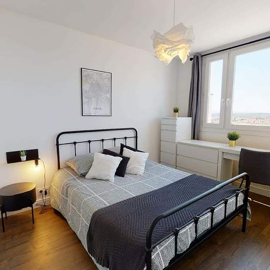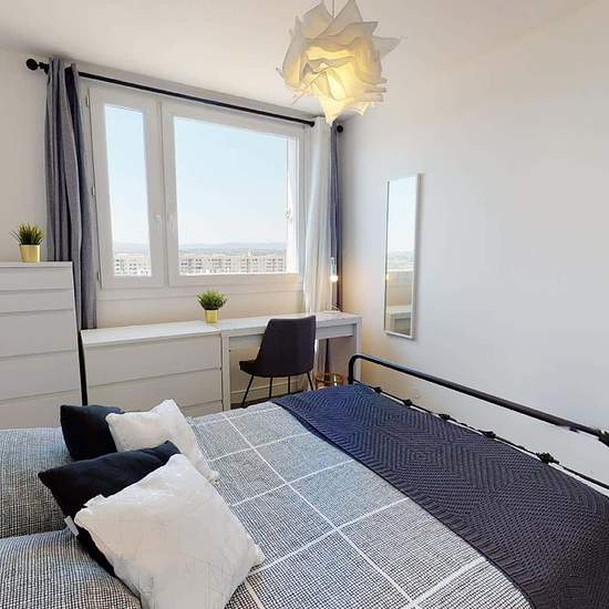 LE LOGEMENT Superbe opportunité avec cette colocation à Lyon: 80 m² pour 4 chambres, un aménagement haut de gamme et un spot bien desservi à côté du T4 et T6. L’appartement, entièrement meublé, se trouve au 12e étage de la résidence 167 boulevard des Etats Unis calme et sécurisée LA CHAMBRE Superficie : 10 m2 La chambre 2 est située dans la partie nuit. A l’instar de l’appartement, elle est bien meublée et décorée avec soin. Elle dispose d’un lit double, d’un beau bureau, d’une commode, d’une colonne de rangement, d’une table de nuit avec la...