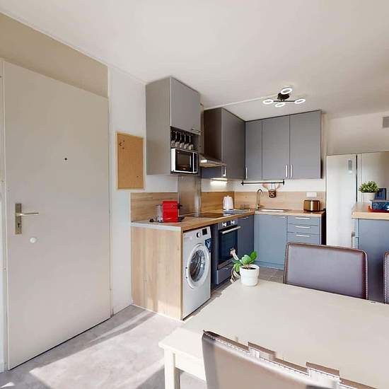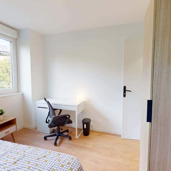 OQORO vous présente cette colocation meublée de 5 chambres de 87m² située dans le 9ème arrondissement de Lyon au 65 D Rue de Saint Cyr, qui offre une jolie vue dégagée. LA CHAMBRE La Chambre 2 est harmonieuse, elle se compose d'un lit double, un dressing, un bureau, une table de chevet et un grand miroir. Coup de cœur pour cette colocation des plus fonctionnelles ! ESPACES COMMUNS Cet appartement se compose d'une belle cuisine aménagée et équipée : lave-linge, four, plaques de cuisson, machine à café, hotte, micro-ondes, grille-pain et un ...