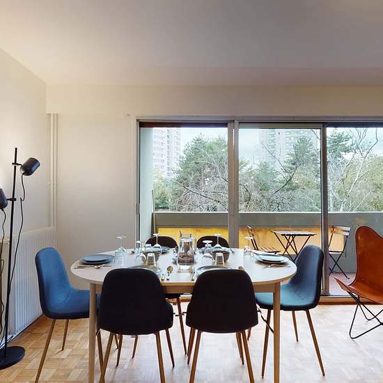 This spacious and comfortable room has been designed for you dear roomie! Practical and functional, the room is equipped with high quality bedding (140x200cm), numerous storage spaces (bed drawers, closet, shelves and night table) and a true office space for your exams or your home office days! All of this in a cheerful and warm atmosphere. In addition, you have access to a shared bathroom. Discover Nanterre Primevères, our cosy and freshly renovated contemporary-style apartment. Close to local shops and restaurants, it is easily accessible ...