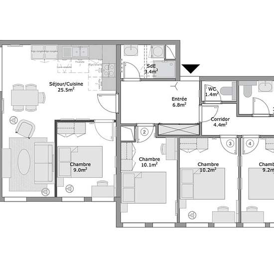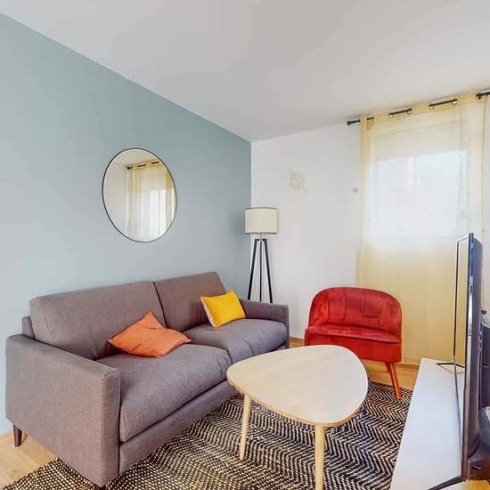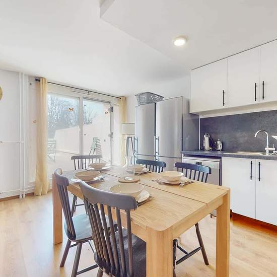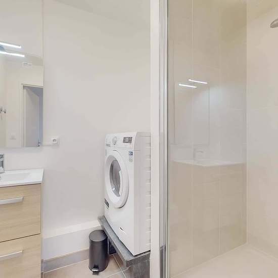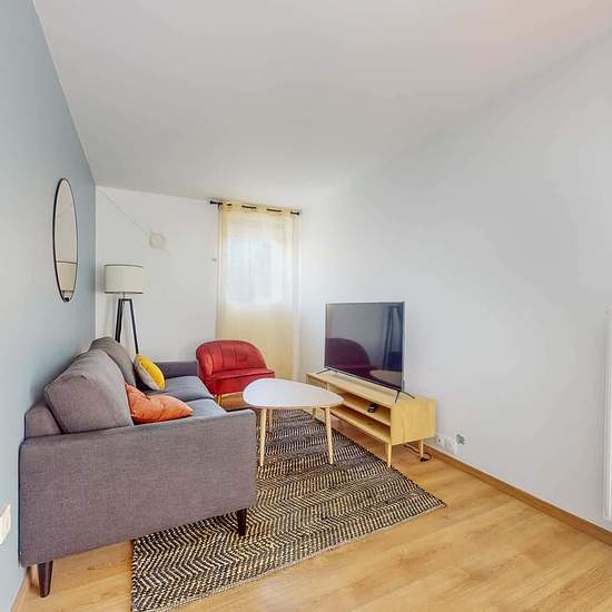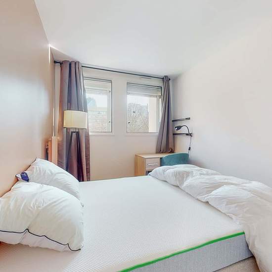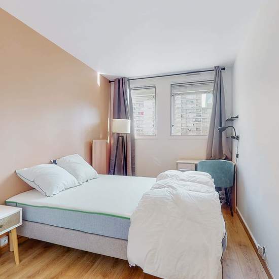This spacious and comfortable room has been designed for you dear roomie! Practical and functional, the room is equipped with high quality bedding (140x200cm), a beautiful wardrobe, a night table and a true office space for your exams or your home office days! All of this in a cheerful and warm atmosphere. In addition, you have access to a shared bathroom and a shared terrace. Beautiful flatshare in Nanterre ! Discover Nanterre Salvador Allende 6, our cosy and freshly renovated contemporary-style apartment. Close to local shops and resta...