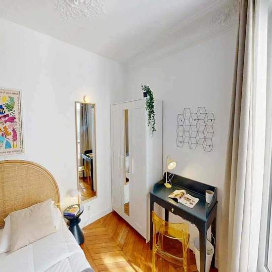 Inquilini all'interno della struttura / Tenants inside the building: 1) Male, Worker, 27 2) Female, Student, 22 EN This lovely private bedroom in a fully equipped, furnished and all-inclusive flatshare in Paris is a mix of comfort and design. It has got household furnishings, including a bed with pillows and duvet What is missing is your things to feel at home! The room can be locked if you need intimacy. The flatshare can be found in the Rochechouart neighborhood, in the heart of Paris. Plenty of shops, public transports, restaurants are ac...