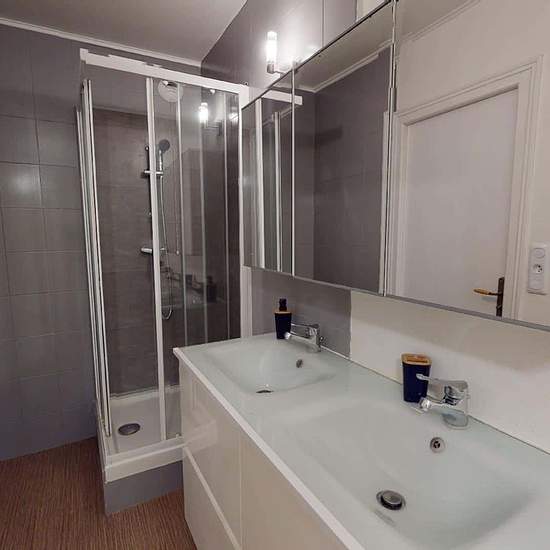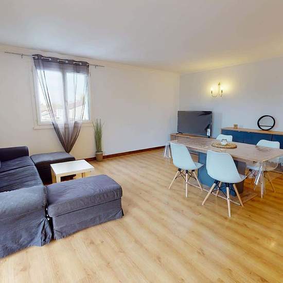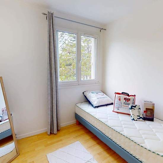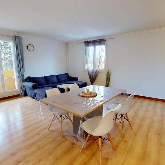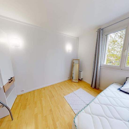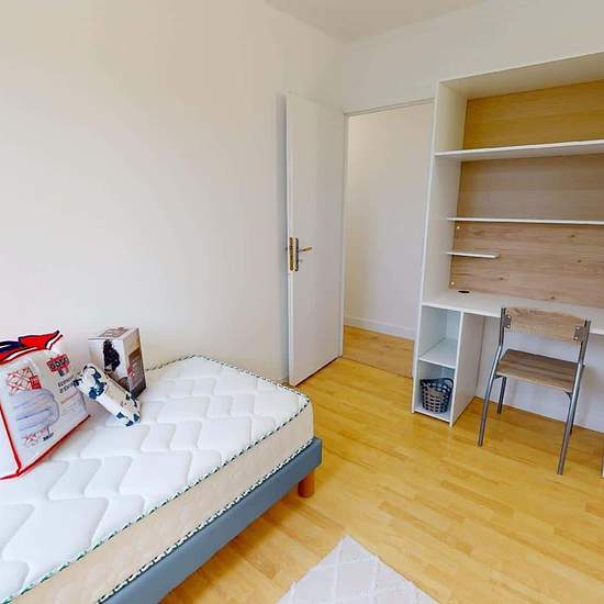 APPARTEMENT 5 PIÈCES AVEC BALCON Venez découvrir au 23 Rue Frédéric Et Irène Joliot Curie (Reims, 51100) cette colocation de 4 chambres de 110 m². LA CHAMBRE Cette chambre dispose d'un lit simple, un bureau avec plusieurs rangements et une chaise. LES ESPACES COMMUNS Cette colocation de quatre chambres s'ouvre sur une grande pièce à vivre. Le salon est aménagé d'un grand canapé, un meuble TV avec télévision, un buffet, une table avec quatre chaises, idéal pour partager des repas entre colocataires. La cuisine, séparée par un bar et deux ta...