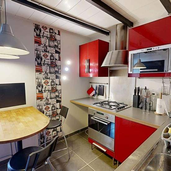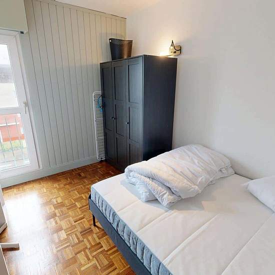 Colocation - Appartement T5 meublé 79m2 - 8 allée du Béarn à RezéSitué 8 allée du Béarn à Rezé, cet appartement T5 meublé en colocation, offre des espaces communs confortables et des chambres entièrement équipées, dans un environnement bien desservi et proche de toutes commodités. Espaces communsDès l’entrée, un hall dessert les différentes pièces de l’appartement.Cuisine séparée et équipée : évier, plaques de cuisson au gaz, four, hotte, micro-ondes, grille-pain, réfrigérateur avec congélateur, nombreux rangements. Un mange-debout avec troi...