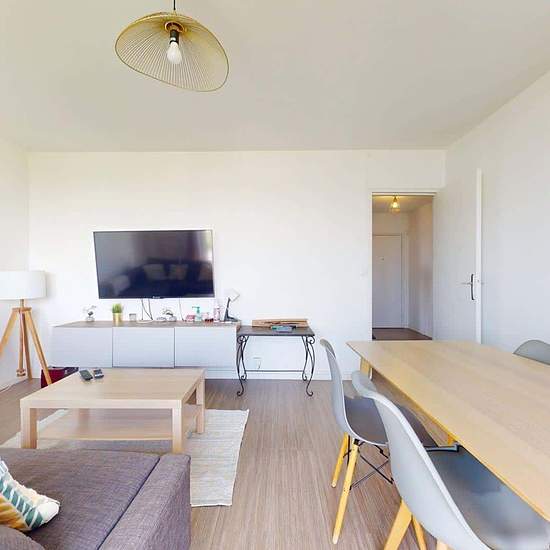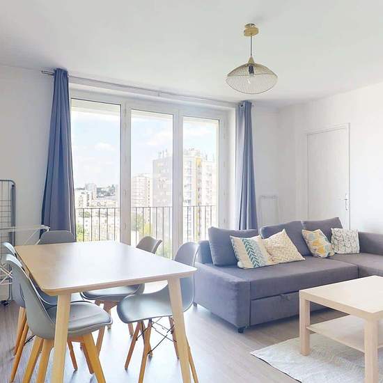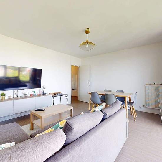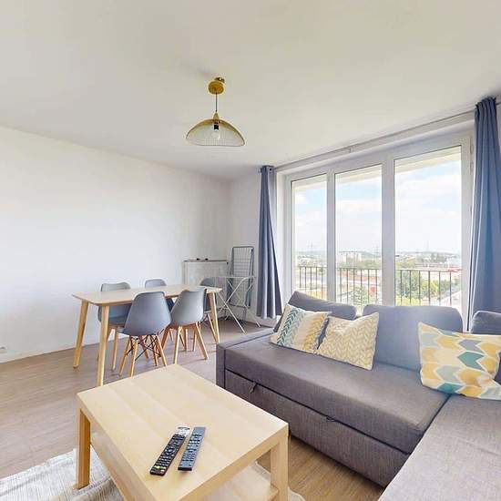 OQORO vous propose cette colocation de 76 m², situé dans la commune de Rosny-sous-Bois au 1 Allée Ambroise Thomas. APPARTEMENT Cette colocation de trois chambres s'ouvre sur une entrée spacieuse avec plusieurs rangements à chaussures. Le séjour, spacieux et lumineux, est aménagé d'un canapé d'angle, d'une table basse, d'un meuble TV avec une télévision, ainsi que d'une table avec cinq chaises, idéal pour partager des repas entre colocataires. La cuisine est équipée d'un réfrigérateur congélateur, d'un lave-linge, d'un four, de plaques de c...