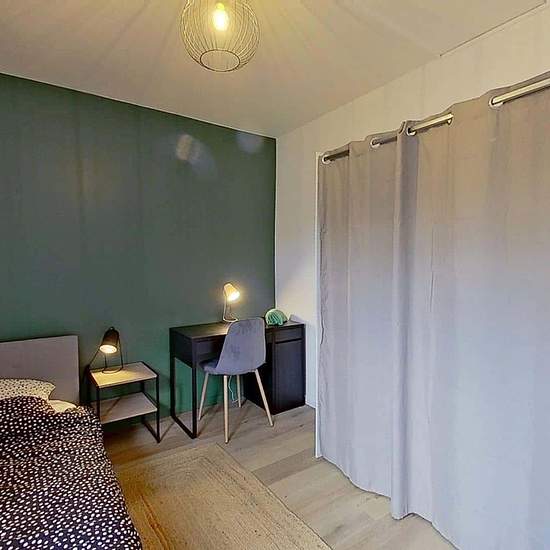 Oqoro vous présente cette colocation de 4 chambres de 74 m², située au 50 Rue François Couperin à Rouen, au sein d’une résidence calme. LES ESPACES COMMUNSLa colocation s’ouvre sur un séjour lumineux et spacieux de 12 m². Vous y trouverez un canapé, une table basse, un meuble TV et une télévision. Une table à manger ronde avec chaises est idéale pour partager des moments conviviaux. Le logement dispose d’un parquet qui rend les espaces très chaleureux. La cuisine, entièrement équipée avec des appareils neufs, comprend : four, micro-ondes, p...