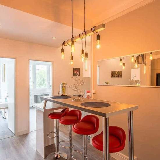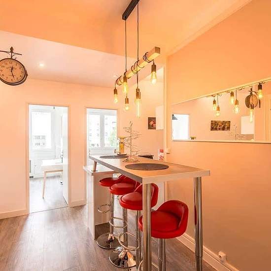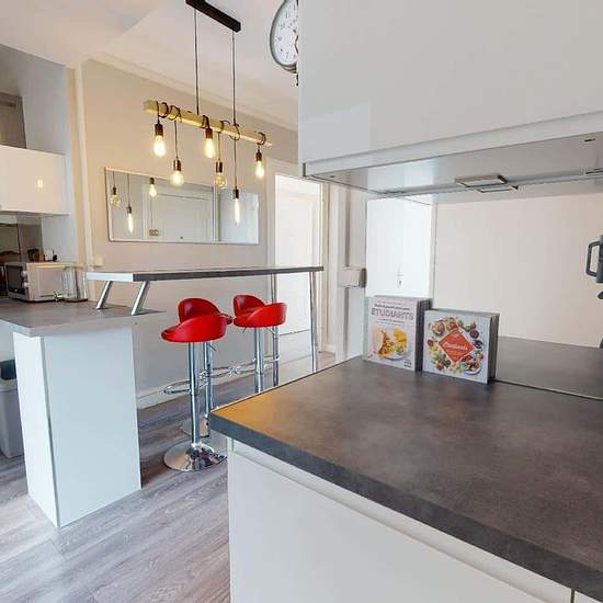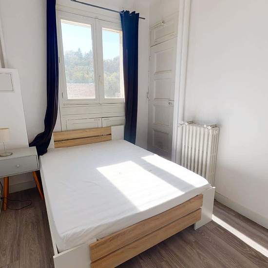 Colocation meublée Saint-Etienne 44 rue des Docteurs Charcots La chambre La chambre 4 est très lumineuse. Cette chambre comporte un lit double, un bureau, une chaise et des rangements. La chambre est sécurisée, elle possède un verrou. L'appartement Les parties communes comprennent une cuisine moderne ouverte équipée avec tout le nécessaire : vaisselle, micro-ondes, four, lave-vaisselle, plaques de cuisson, etc. Une salle de bain avec douche, machine à laver, et meuble vasque ainsi que des WC séparés viennent compléter ce logement. Coup de ...