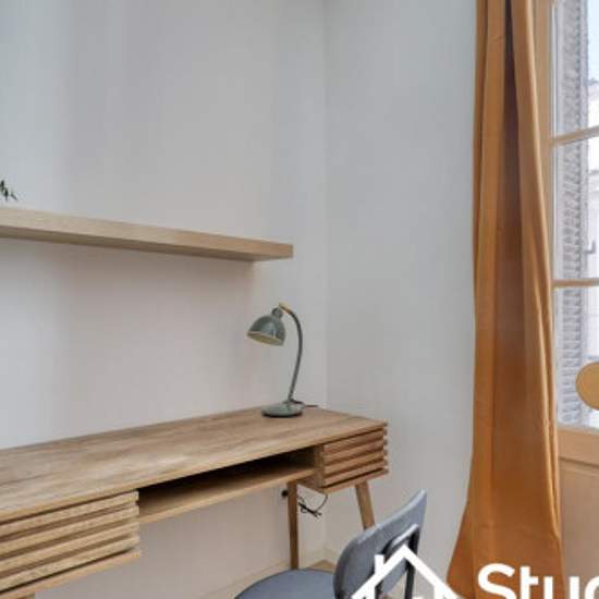5 chambre(s) libre(s) dans une colocation de 5 chambres dans un appartment de 95m2 À 2 pas du centre-ville et de la gare. - 1er étage sans ascenseur 5 chambres privées meublées • Literie complète, bureau, rangements, serrure individuelle • Une chambre dispose de sa propre salle d'eau + terrasse privative • Une chambre est accessible par les communs avec son entrée privée. Espaces communs • Cuisine toute équipée (four, plaque, frigo, lave-vaisselle…) • Salon avec canapé d'angle, TV, coin repas (aménageable) • 1 salle de bain + 2 salles d'eau ...