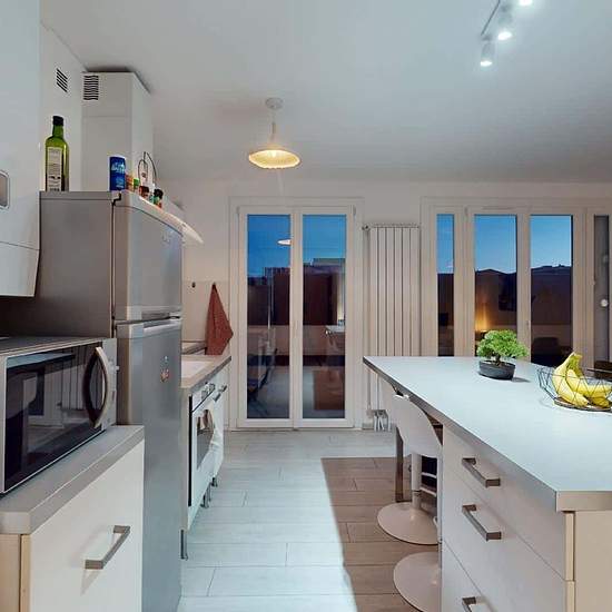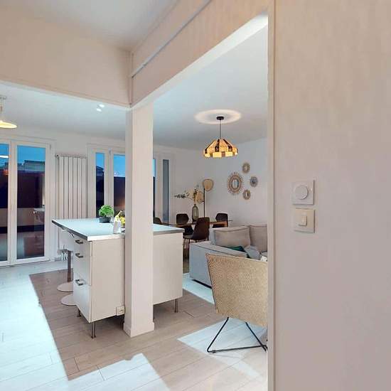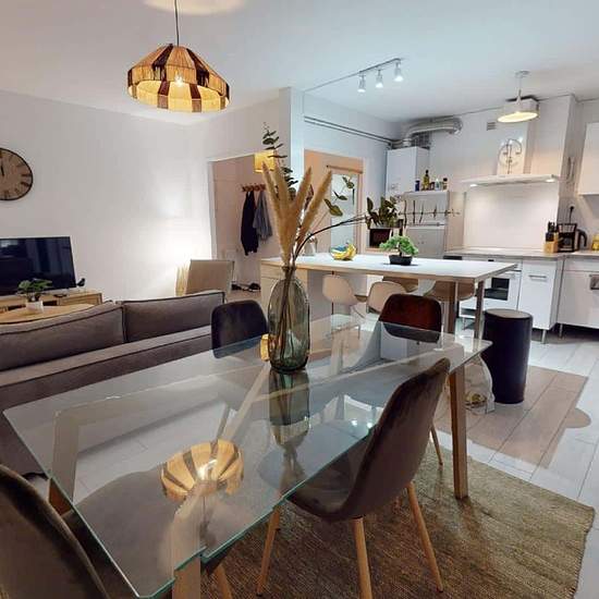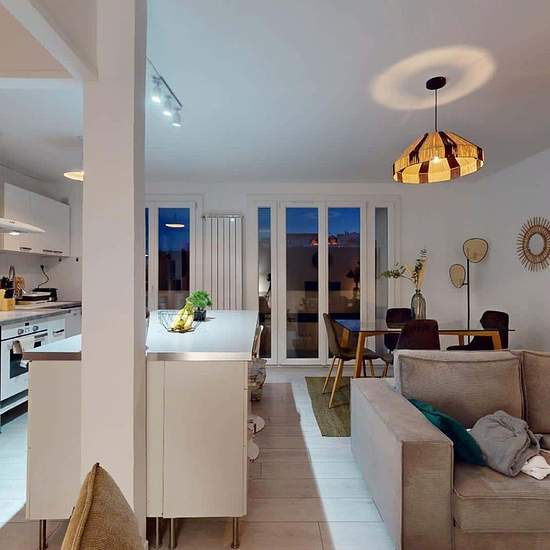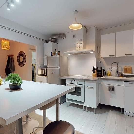 APPARTEMENT 4 PIÈCES AVEC BALCON Découvrez au 1 Rue De Zurich (Toulouse, 31200) cette colocation de 3 chambres de 78 m². LA CHAMBRE Cette chambre se compose d'un lit double, d'une table de chevet accompagnée d'une lampe, d'un bureau accompagné de sa chaise et de rangements. LES ESPACES COMMUNS L'appartement comprend trois chambres, une cuisine, un salon, une salle de bains et des toilettes séparées. La cuisine est très bien équipée, avec un micro-ondes, un four, des plaques de cuisson, une hotte, un bar avec des chaises hautes, etc., et el...