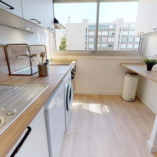 158 cours Emile Zola - Métro Gratte-Ciel LE LOGEMENT Superbe colocation de 4 chambres entièrement meublée à neuve (durant l’été 2021) de 79m2 située au 158 cours Emile Zola. LA CHAMBRE Superficie : 10m2 L’aménagement de la chambre est complet et offre tout le confort nécessaire : un lit double, un bureau, une chaise et un placard intégré. ESPACES COMMUNS Cuisine entièrement équipée Belle pièce de vie lumineuse Une loggia est accessible depuis le salon Salle de bain avec baignoire WC séparés CADRE DE VIE De nombreux commerces (boucherie, ...