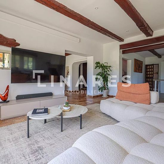 Parfaite alchimie - villa t5 de 230 m² + appartement t3 de 70 m² + dépendance + terrain 3900 m² + piscine – quartier les barnouins / proximité ibs - 13170 les pennes mirabeau llinares immobilier vous propose de découvrir en location meublée : parfaite alchimie, un magnifique mas en pierres parfaitement rénové par son actuel propriétaire. Située à vingt minutes du centre d'aix-en-provence, à quinze minutes de la gare d'aix tgv et de l'école internationale ibs, sur la commune des pennes mirabeau, limite cabriès, dans le quartier prisé des barn...